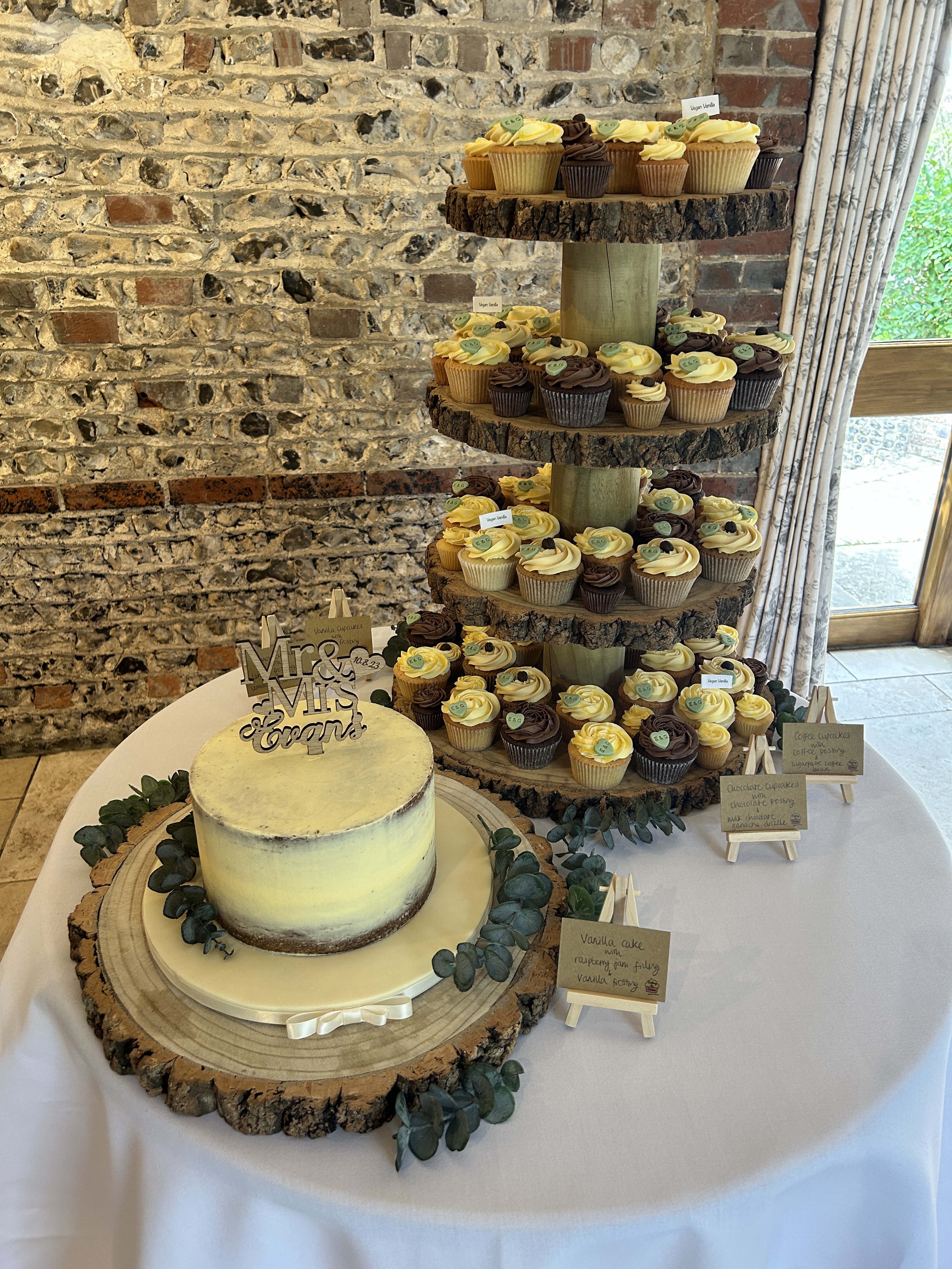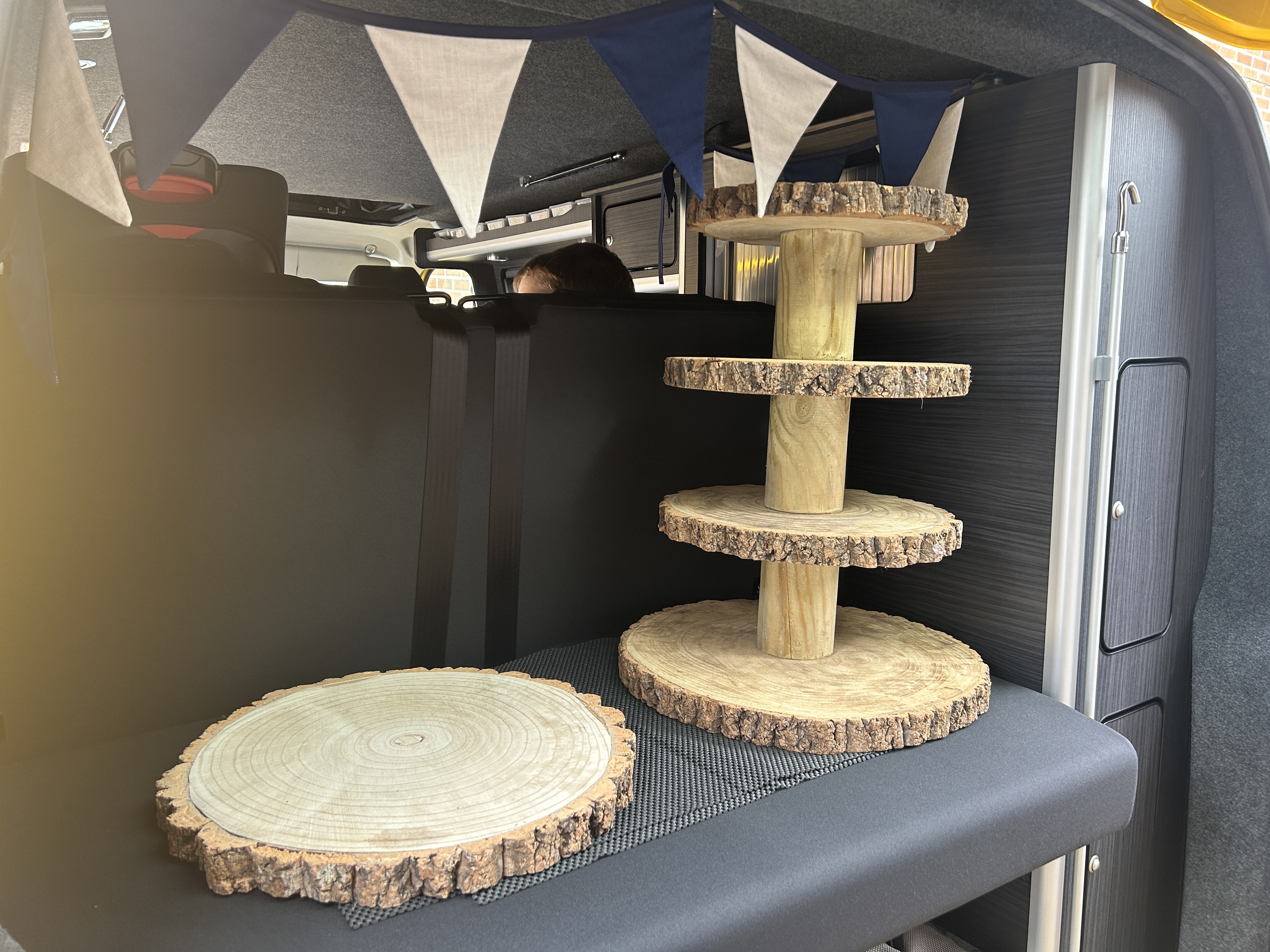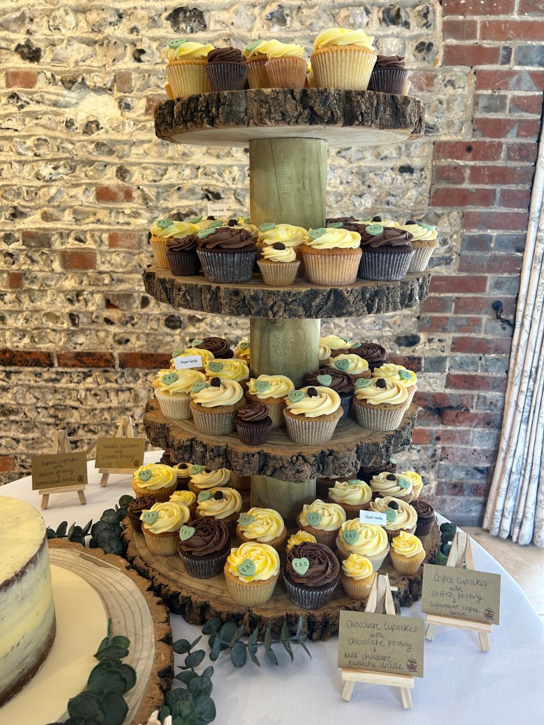 Our four-tiered wooden log slice stand is a real show-stopper! Wonderful for displaying cupcakes and all sorts of other beautiful treats.