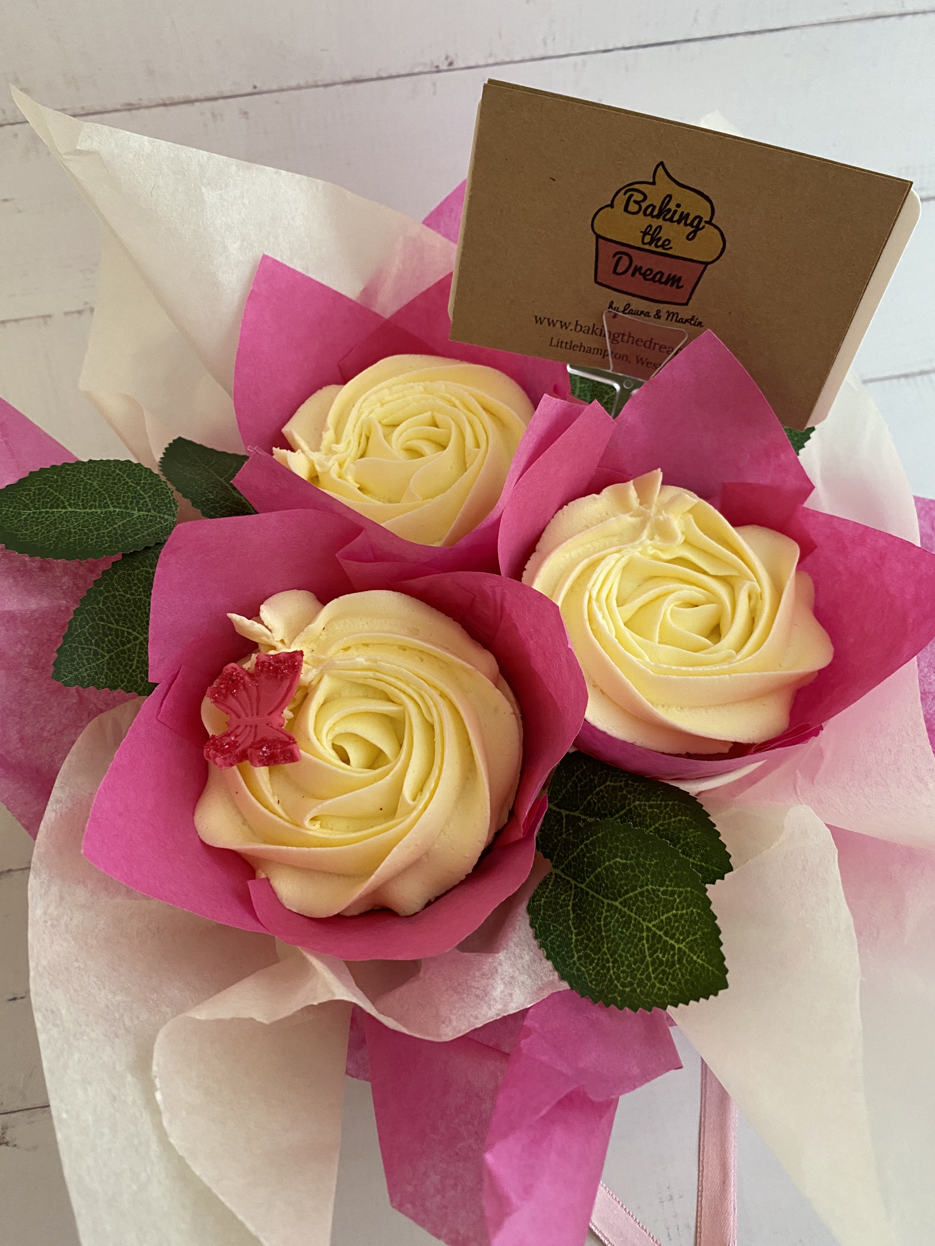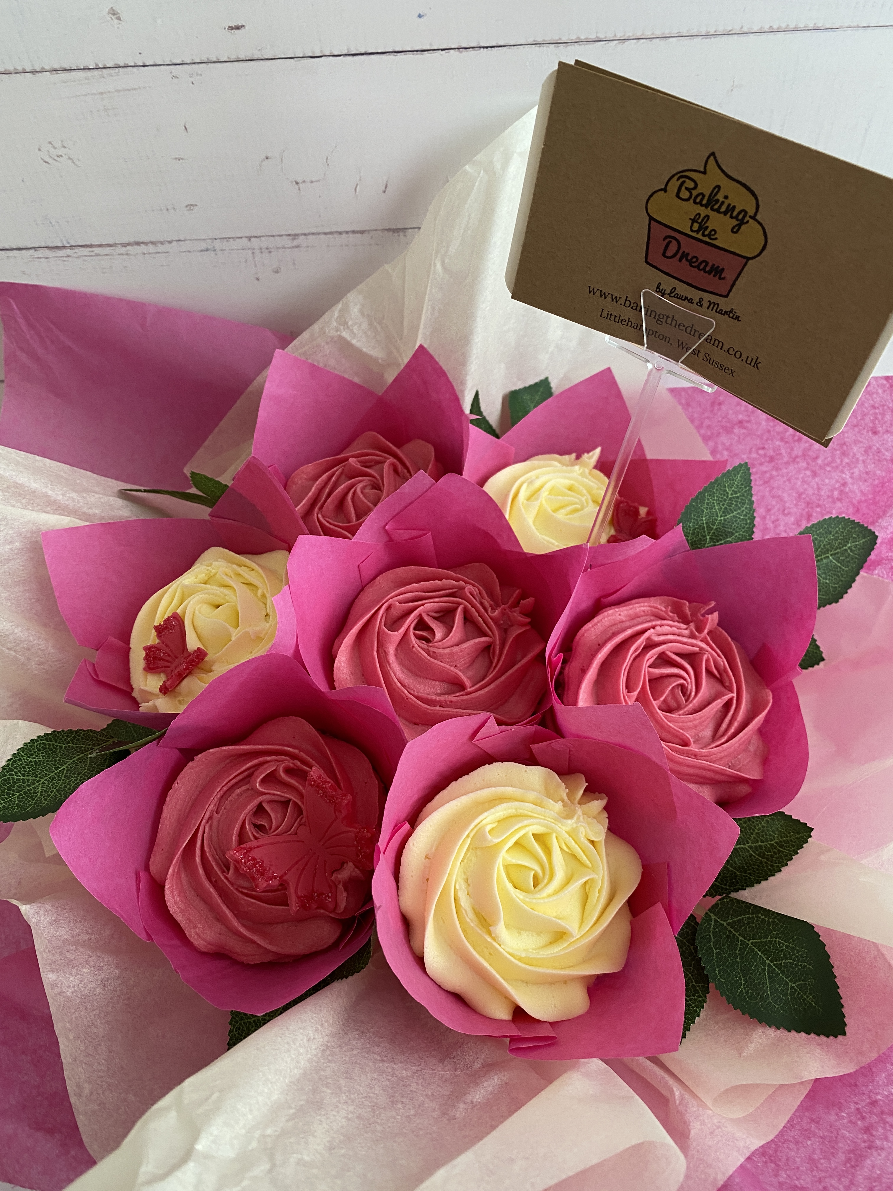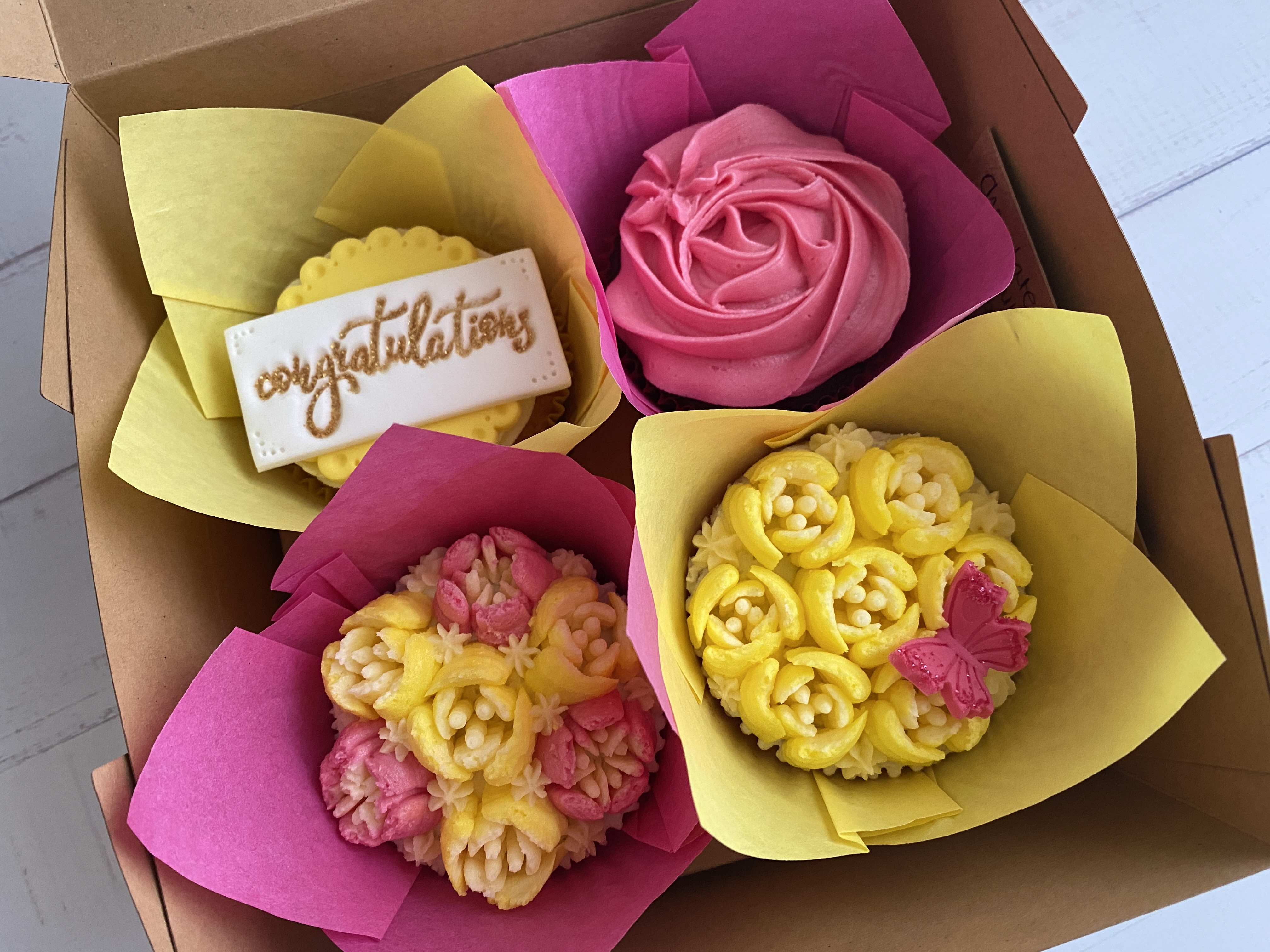 We can create beautiful boxes and bouquets of floral cupcakes, in any flavours, and to match a favourite colour or flower theme.