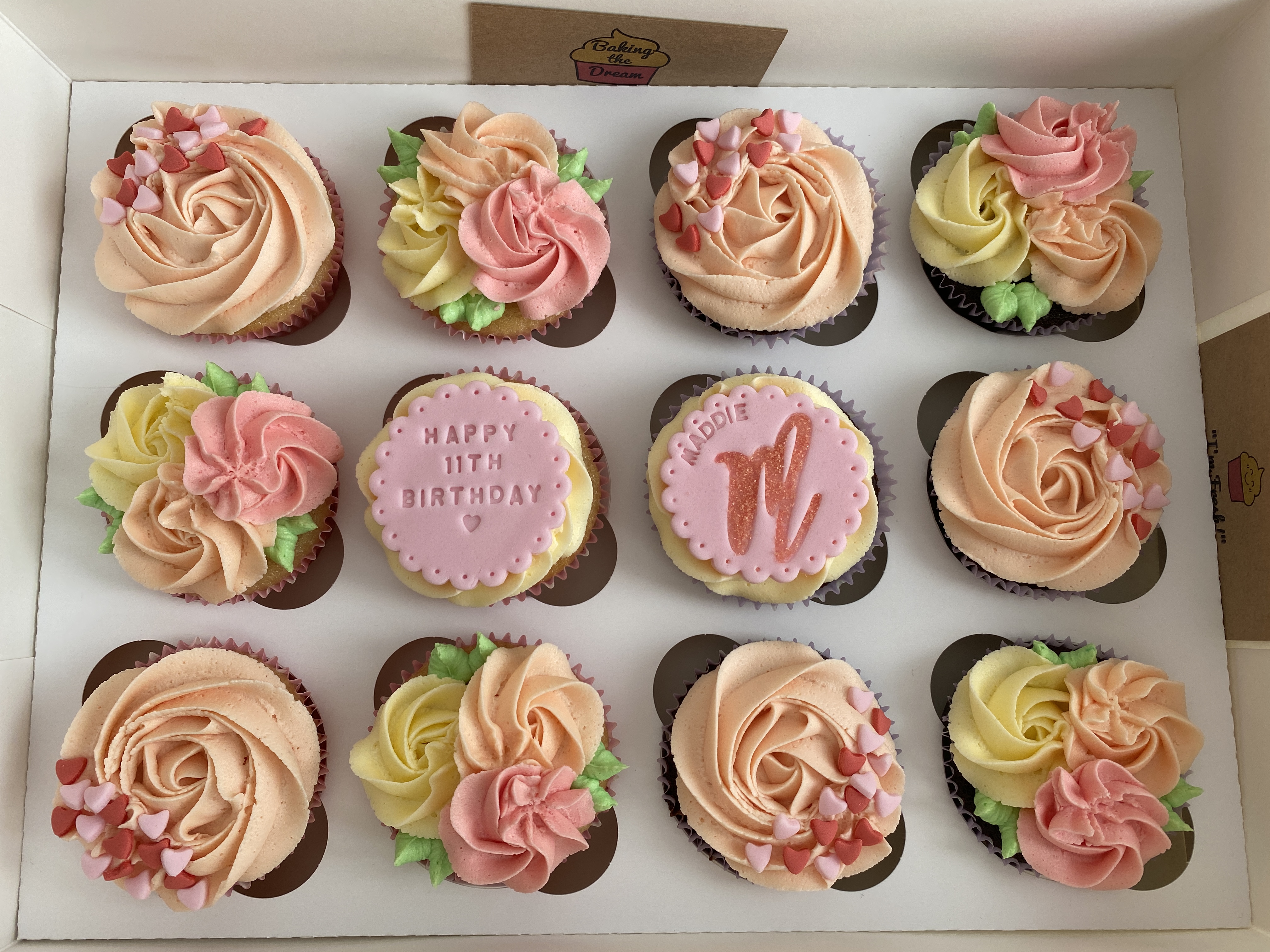 The middle cupcake in each arrangement can have a personalised edible fondant topper (from £2.50).