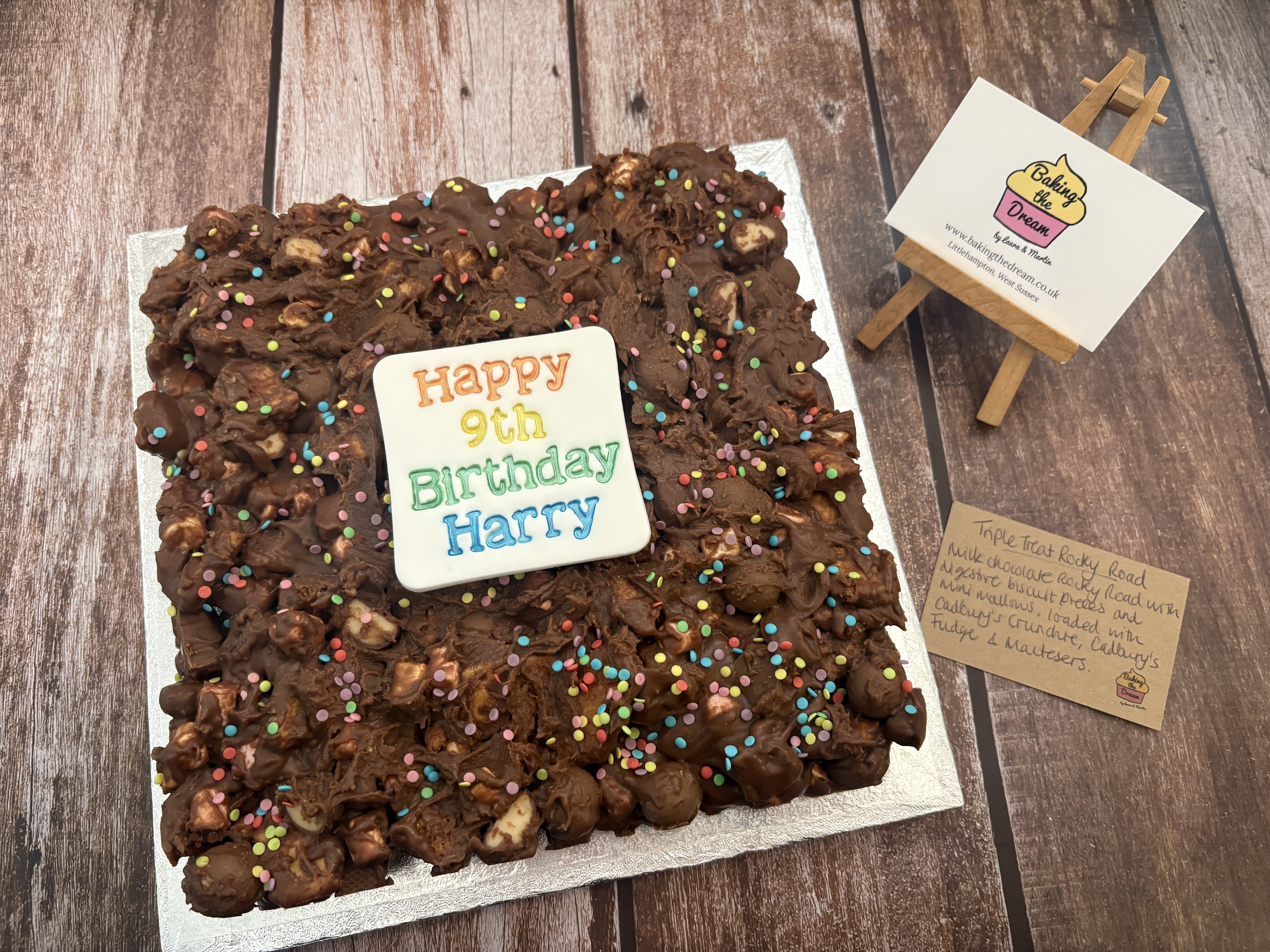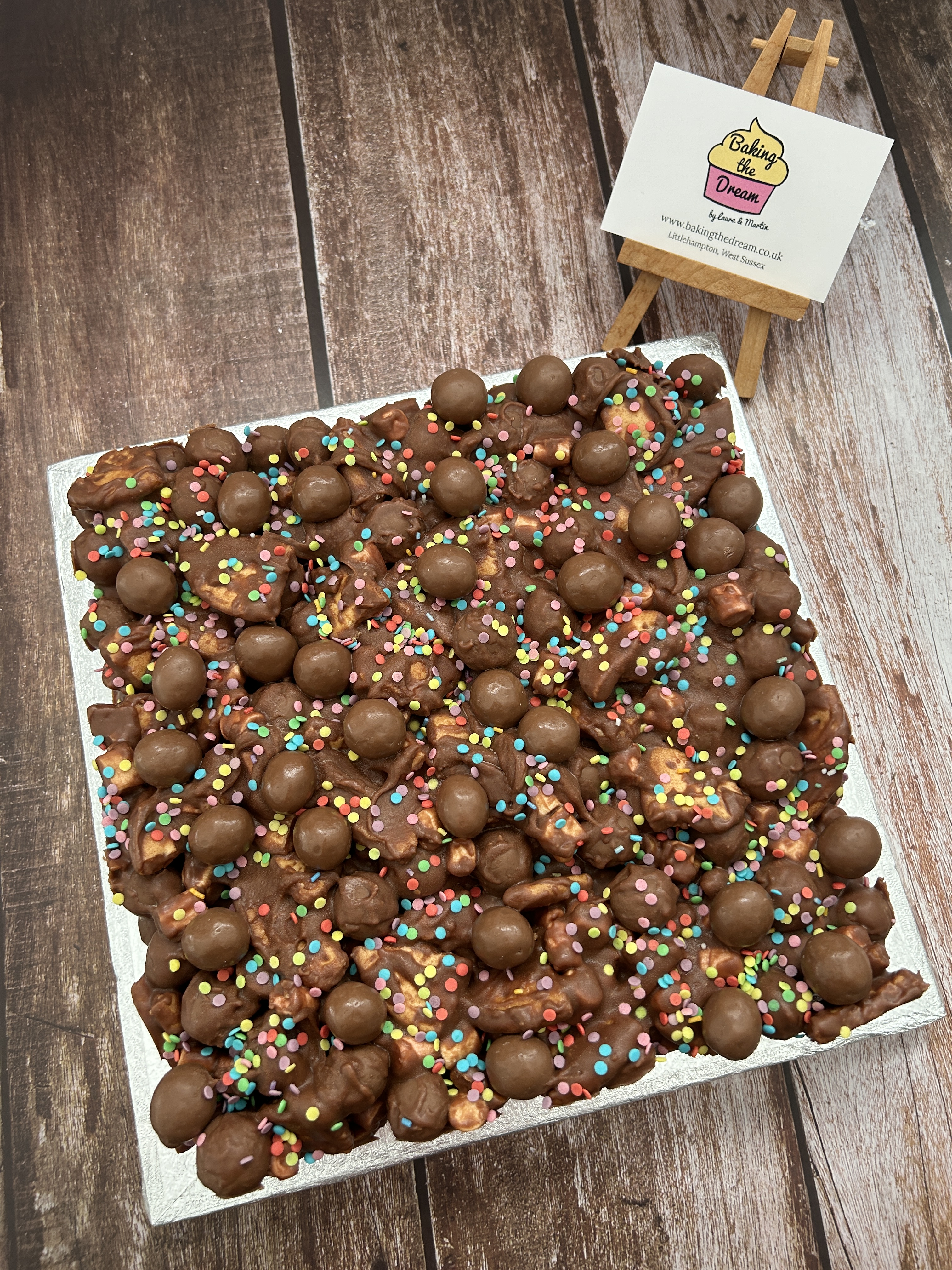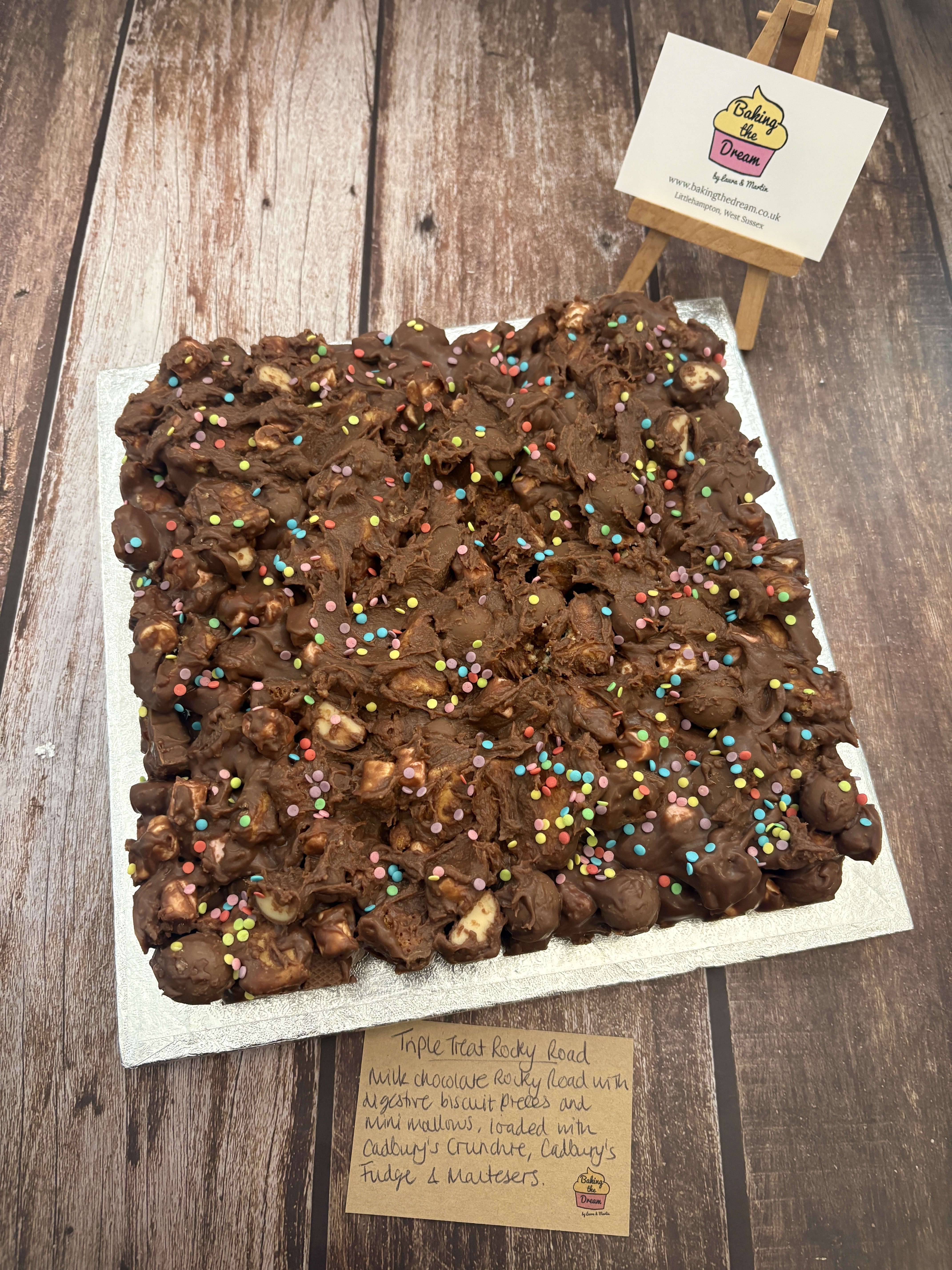 For Β£2.50, upgrade the look of your Rocky Road slab by opting for it on a presentation board too. Perfect for when the Rocky Road slab is for a special occasion!