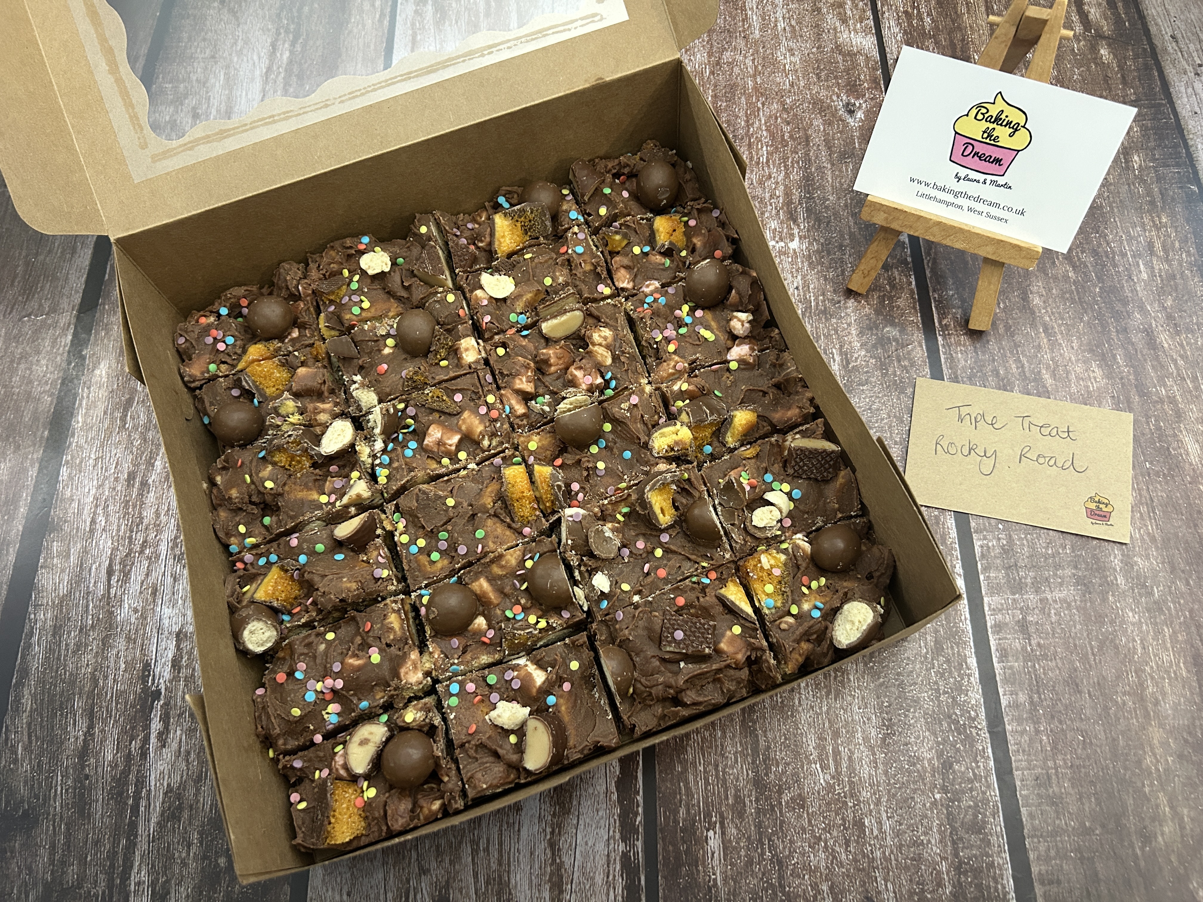 Our standard menu-flavour Rocky Road slabs are Β£24.50.