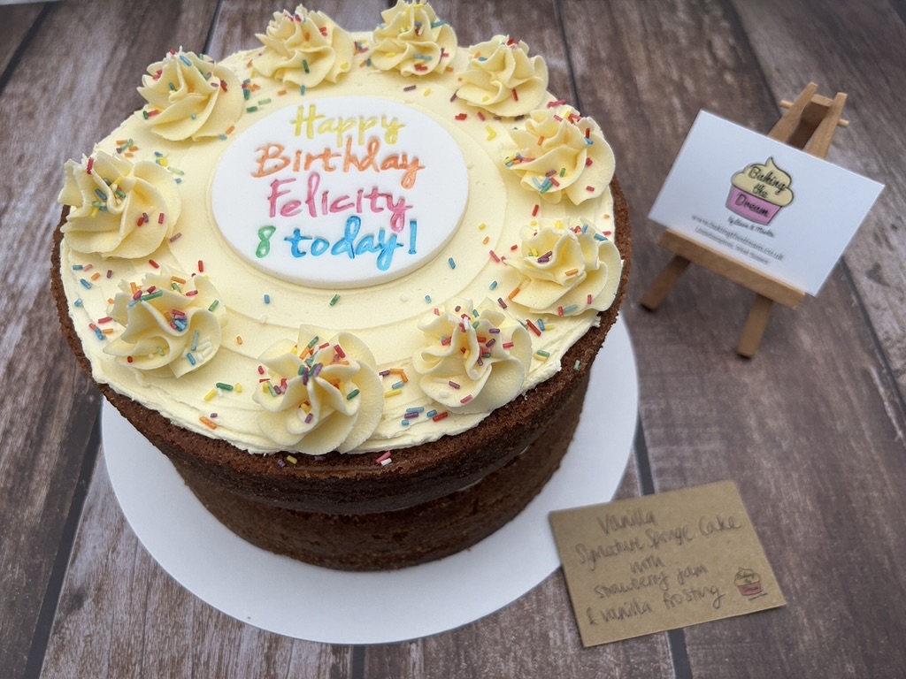 Our Signature Sponge cakes have “naked” sides as standard; the sides of the cake can be completely covered with buttercream for an additional £10.