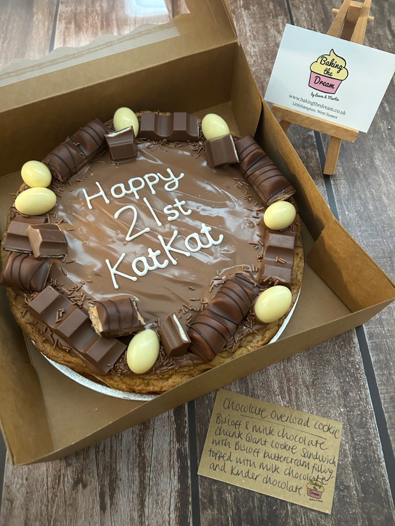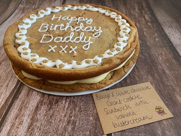 Soft, delicious cookies baked to order – in any flavour! Giant Cookies and Giant Cookie Sandwiches (two Giant Cookies sandwiched together with vanilla buttercream!) are available plain or decorated – and with a decadent “overload” option too.