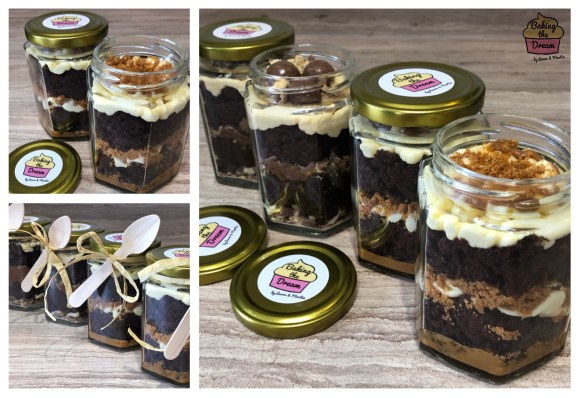 Your perfect combination of sponge, fillings and toppings layered in a glass jar. Mix and match from our Signature Flavour Menu, our “Baking the Dream Presents…” Menu – or just ask if you would like to request your own flavours. They even come with spoons, if you would like!